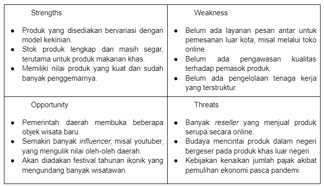 Tentunya sebelum menentukan strategi untuk mengembangkan usaha, kita perlu menganalisis lebih dulu apa kekuatan, kelemahan, peluang dan ancaman yang akan dihadapi oleh bisnismu dan juga strategi apa yang harus dilakukan untuk menghadapi kompetitor.